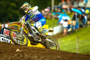 Justin Hill rides his Suzuki RM-Z450 to a top-five in his 450 National debut; RM-Z450 teammate Weston Peick earns season-best fourth place moto finish Huntersville, NC.